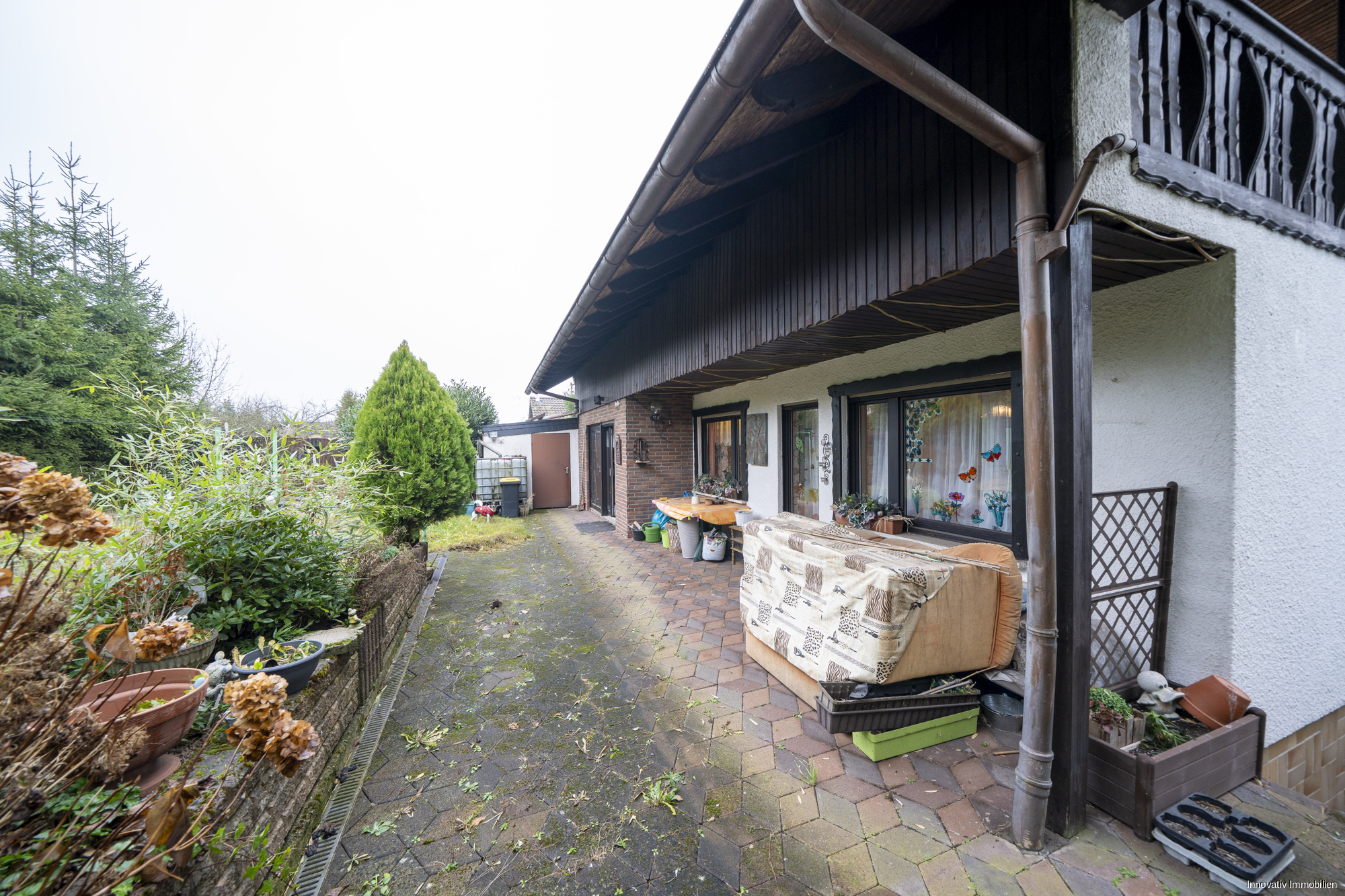 Der Gartenbereich des Hauses bietet genügend Platz für spielende Kinder und lädt zum gemütlichen Verweilen mit Freunden und der Familie ein.