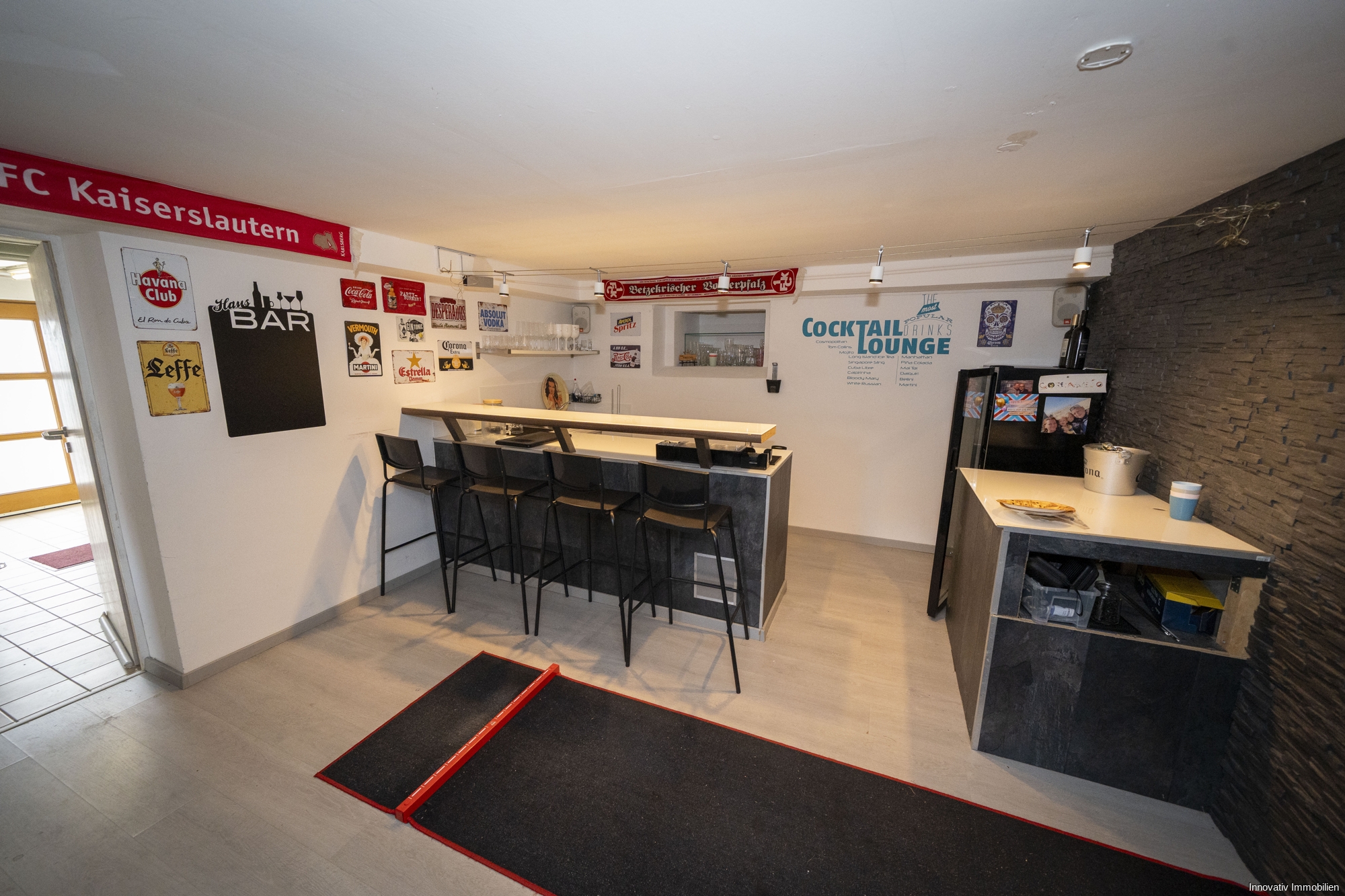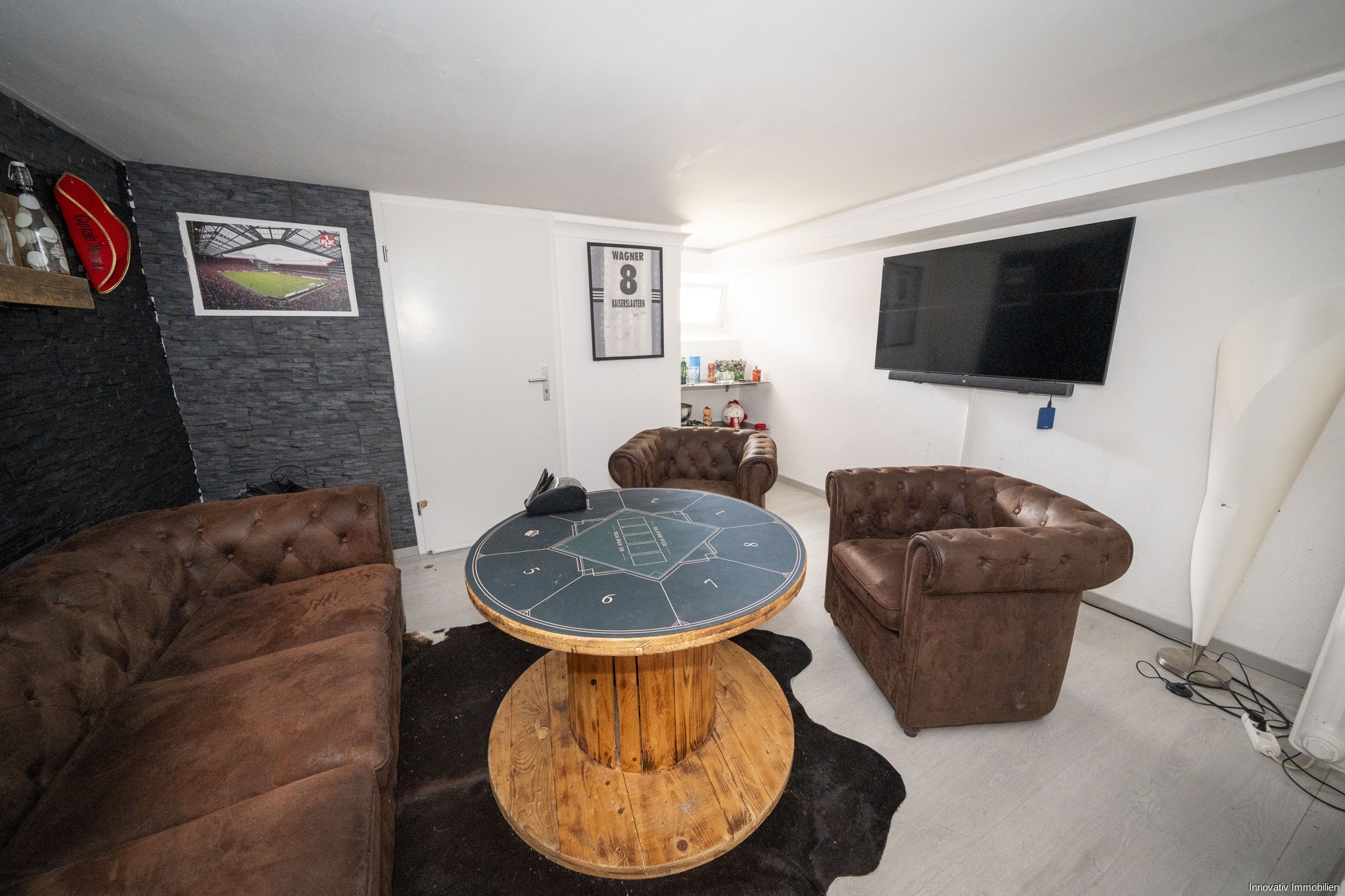Das Untergeschoss des Hauses verfügt neben einem Heizungsraum auch über eine Toilette und einen Abstellraum. Besonders erwähnenswert ist der Partykeller auf dieser Etage, der mit einem Bar-, Fernseh- und Pokerbereich ausgestattet ist und so keiner Feierwünsche offen lässt.