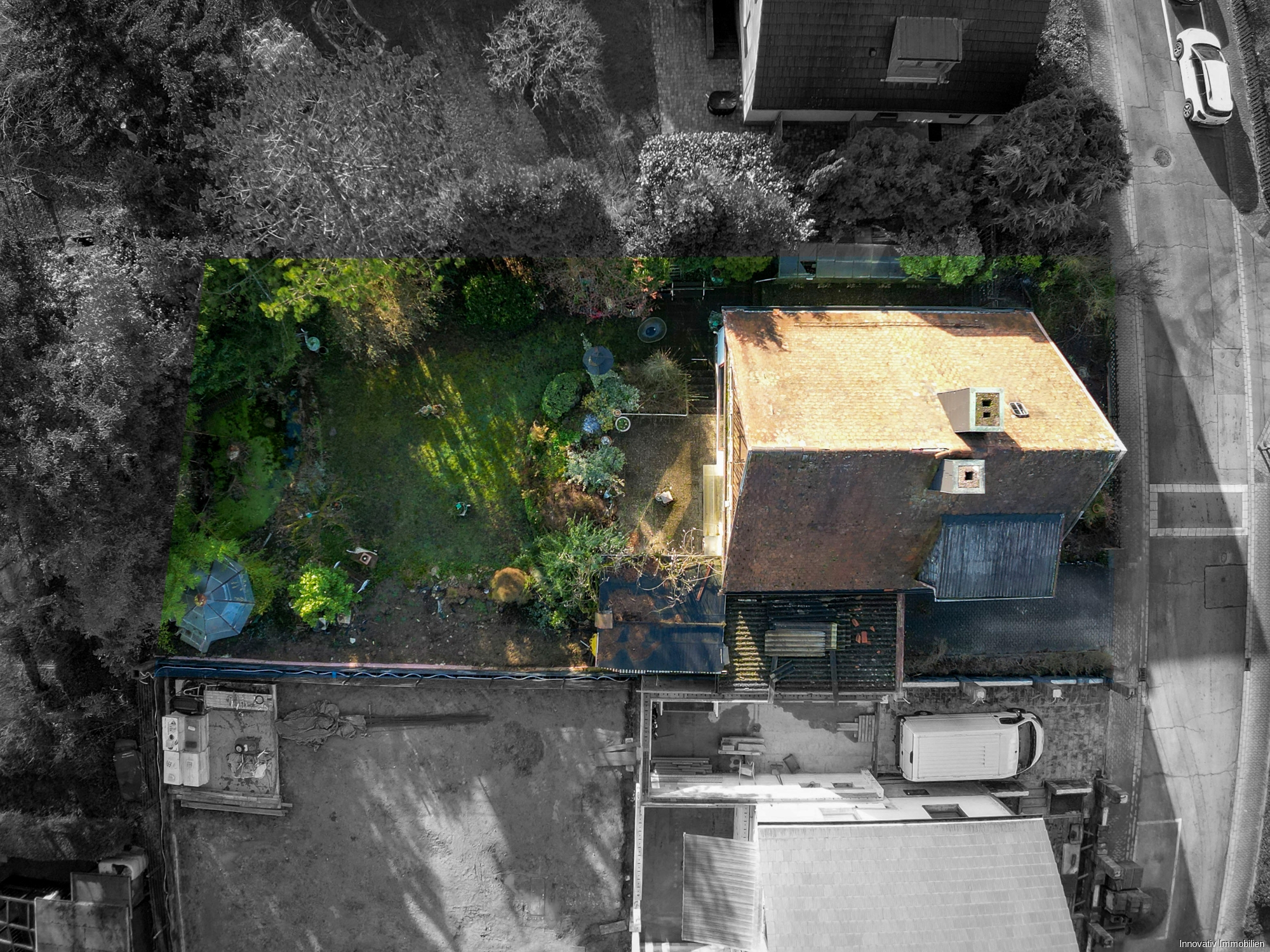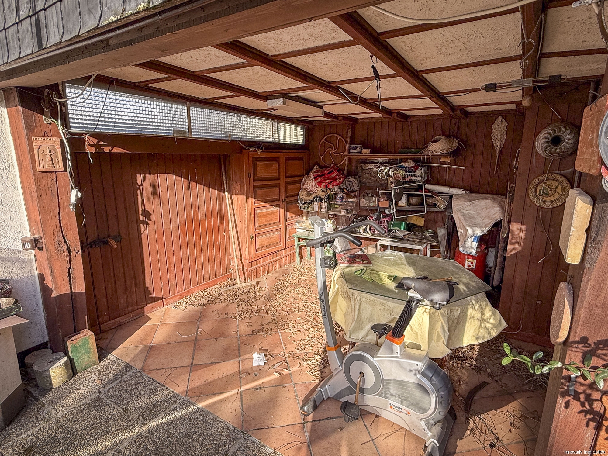 Das Haus verfügt zusätzlich über eine Garage mit einem elektrischen Torantrieb.