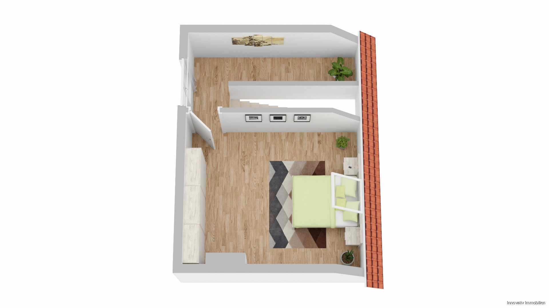 Wieder im Flur angelangt führt Sie die Holztreppe in das Dachgeschoss. Hier finden Sie ein geräumiges, abgeschlossenes Zimmer, welches ebenfalls zu unterschiedlichen Zwecken geeignet ist.