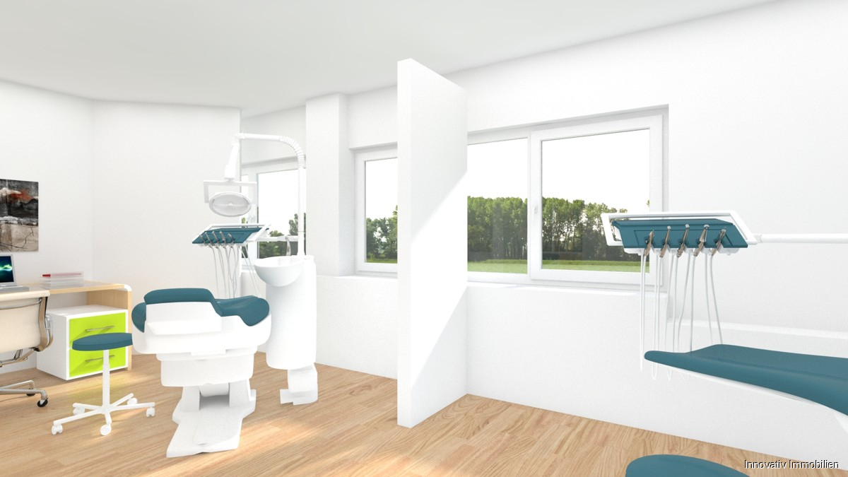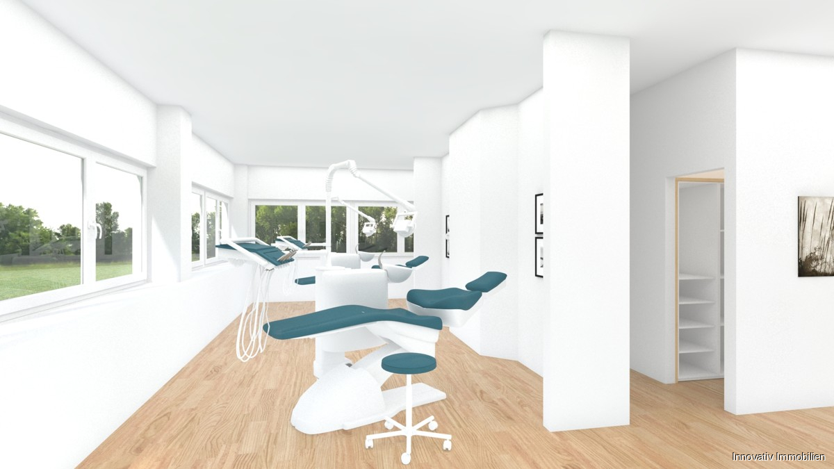 Die Bilder zeigen eine Visualisierung einer Praxis ( dies ist nur als Beispiel gedacht) Natürlich wären auch andere genannte Gewerbe möglich natürlich wäre auch ein Umbau zu Wohnungen möglich.