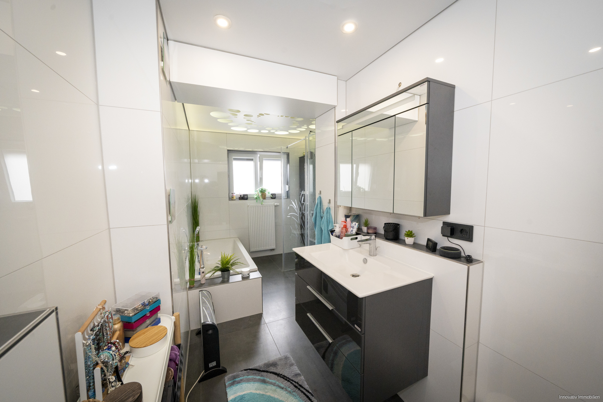 Fliesen im Bad, Teppich, Laminat