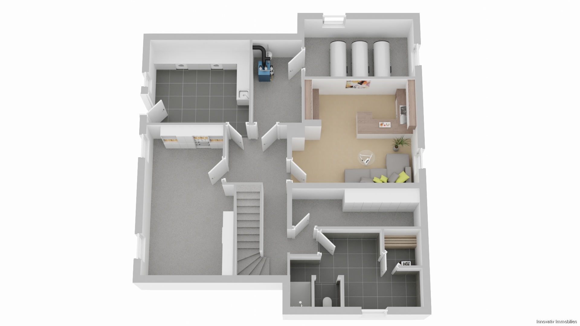 Eine Kelleretage mit genügend Lagerfläche, Waschküche, Saunaraum und Partykeller ist ebenfalls vorhanden.