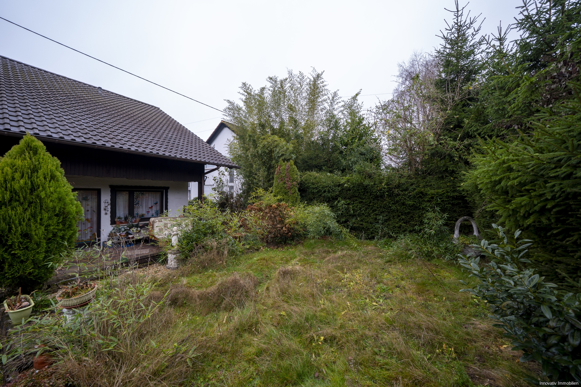 Der Gartenbereich des Hauses bietet genügend Platz für spielende Kinder und lädt zum gemütlichen Verweilen mit Freunden und der Familie ein.